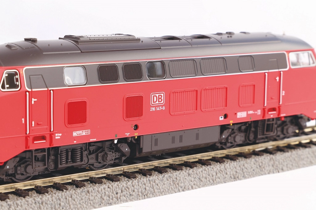 Model legendárnej lokomotívy radu V 160/216 v mierke H0 predstavuje verné vyhotovenie verzie BR 216 DB AG z 90. rokov v orientálnej červenej s typickým svetlým „lícem“. Ponúka precízne detaily, kvalitné potlače a biele/červené svetlá podľa smeru jazdy. Vďaka rozhraniu PluX22 možno jednoducho doplniť digitálny dekodér aj ovládanie kabínového osvetlenia.