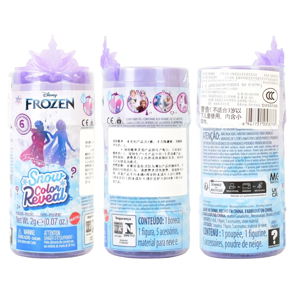 Interaktívna bábika Snow Colour Reveal prináša deťom radosť z prekvapenia a kreatívneho hrania. Vložte tubu s bábikou do vody, sledujte, ako sa aktivuje snehový efekt, a počas chvíľky sa odhalí, ktorá postava sa skrýva vo vnútri. Každé rozbaľovanie je jedinečné a plné zimnej mágie sveta Ľadového kráľovstva.
