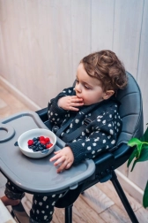Rastie s dieťaťom od prvých príkrmov až po kreatívne hranie. Tác ľahko zložíte a výšku upravíte do nízkej varianty na samostatné sedenie.