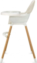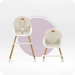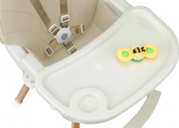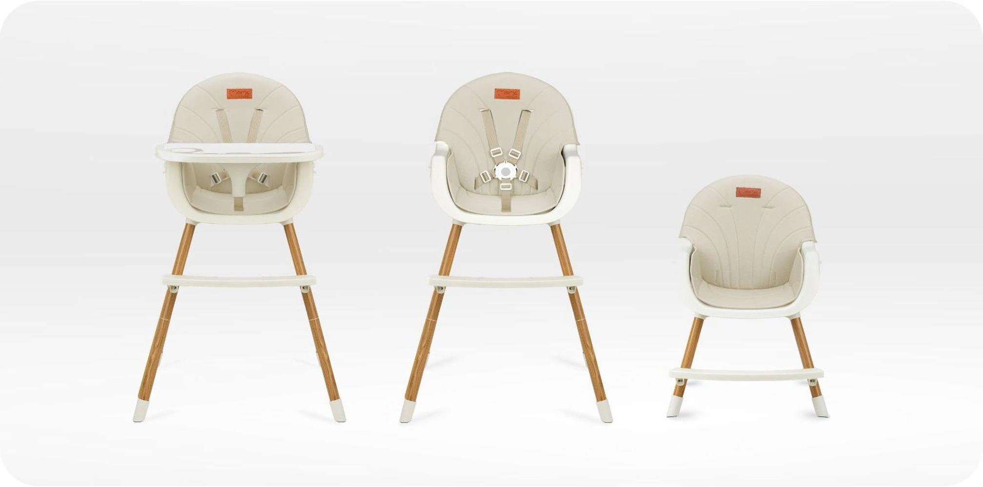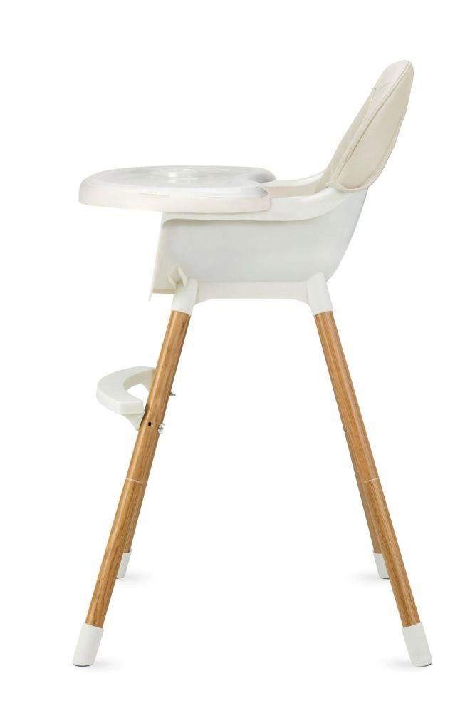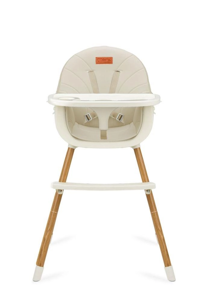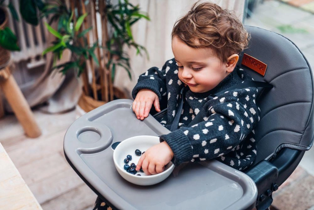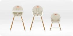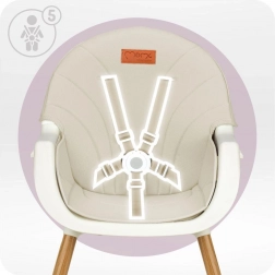 Stabilná konštrukcia s opierkou na nohy, 5-bodovými bezpečnostnými pásmi a nastaviteľným dvojitým tácňom zaistí pohodlie aj bezpečie pri každom jedle. Minimalistický dizajn a tlmené farby skvele zapadnú do modernej kuchyne či obývacej izby.