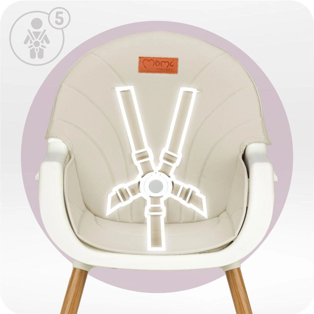 MoMi Reki je praktická jedálenská stolička, ktorá sa ľahko prispôsobí každodenným potrebám rodiny. Vďaka 3 konfiguráciám ju využijete ako vysokú stoličku s tácňom, stoličku k stolu aj ako nízku stoličku na hranie. Poťah z ekokože sa rýchlo čistí – stačí utrieť, a horný tác jednoducho vložíte do umývačky.