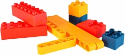 V balení nájdete pestrý mix kociek, ozubených koliesok, technic nosníkov a špeciálnych dielov, vrátane bloku s kolieskami a ozdobných „očí“. Návod ponúka množstvo nápadov, no fantázii sa medze nekladú – od zvieratiek cez vozidlá až po jednoduché mechanizmy.