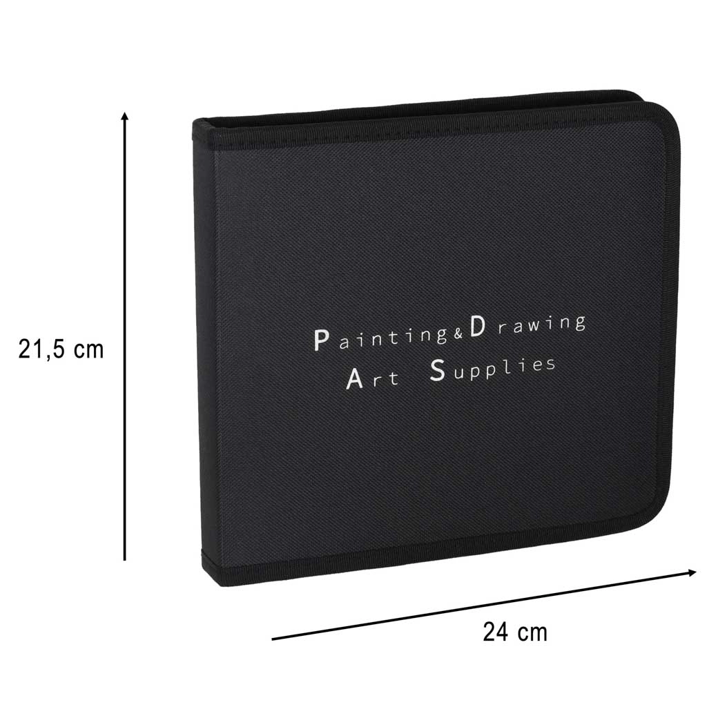 Odolné nylonové puzdro udrží všetko prehľadne na mieste a skicár A5 s 20 listami je pripravený na nápady kedykoľvek.