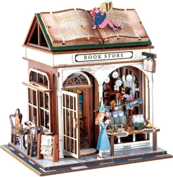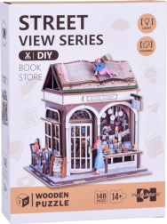 Toto detailné drevené 3D puzzle vám umožní postaviť realistické mini kníhkupectvo plné kníh a drobných dekorácií. LED osvetlenie po zotmení vykúzli útulnú atmosféru a zvýrazní premyslené detaily viditeľné cez okná. Model skvele poslúži ako originálna dekorácia do interiéru aj ako darček pre milovníkov modelov a kutilstva.