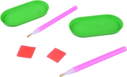 Dve tácky s drážkami, dve aplikačné perá a dva vosky zaistia presné a pohodlné kladenie kamienkov – ideálne pre deti aj začiatočníkov.