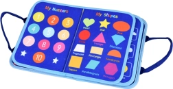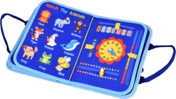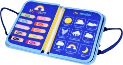 Abeceda, čísla 1–10, tvary, farby, počasie, zvieratká, kalendár a hodiny aj sucho stierateľná tabuľka – všetko v jednej prenosnej knižke.