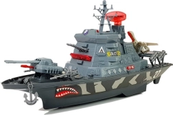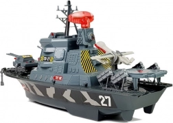 - Vojenská loď so svetlami a zvukmi, 2 figúrky vojakov, lietadlo, ponton, súprava zbraní