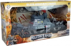 Objavte akčné hranie s vojenskou loďou – mobilnou základňou so svetelnými efektmi, zvukmi mora, streľby a alarmov a otočným radarom. Súčasťou je lietadlo, ponton, 2 figúrky vojakov a súprava zbraní. Pohyblivé guľomety a delá robia hru maximálne realistickou. Ideálny darček pre malých stratégov od 3 rokov, s certifikáciou CE.