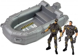 V balení nájdete 2 figúrky vojakov, palubné lietadlo, nafukovací čln/ponton a súpravu zbraní pre pestrú taktickú hru.