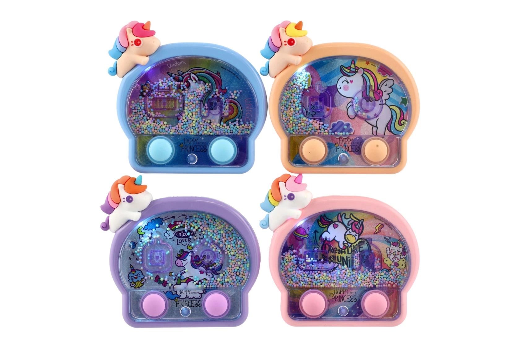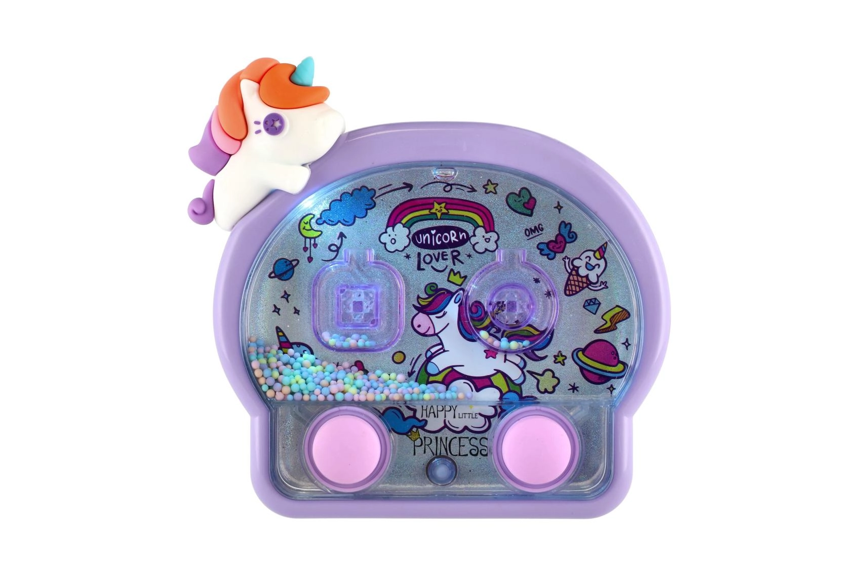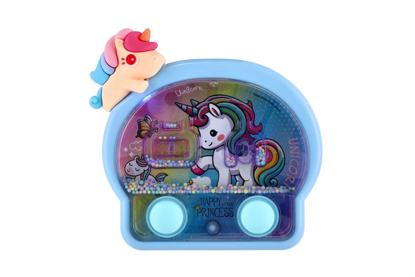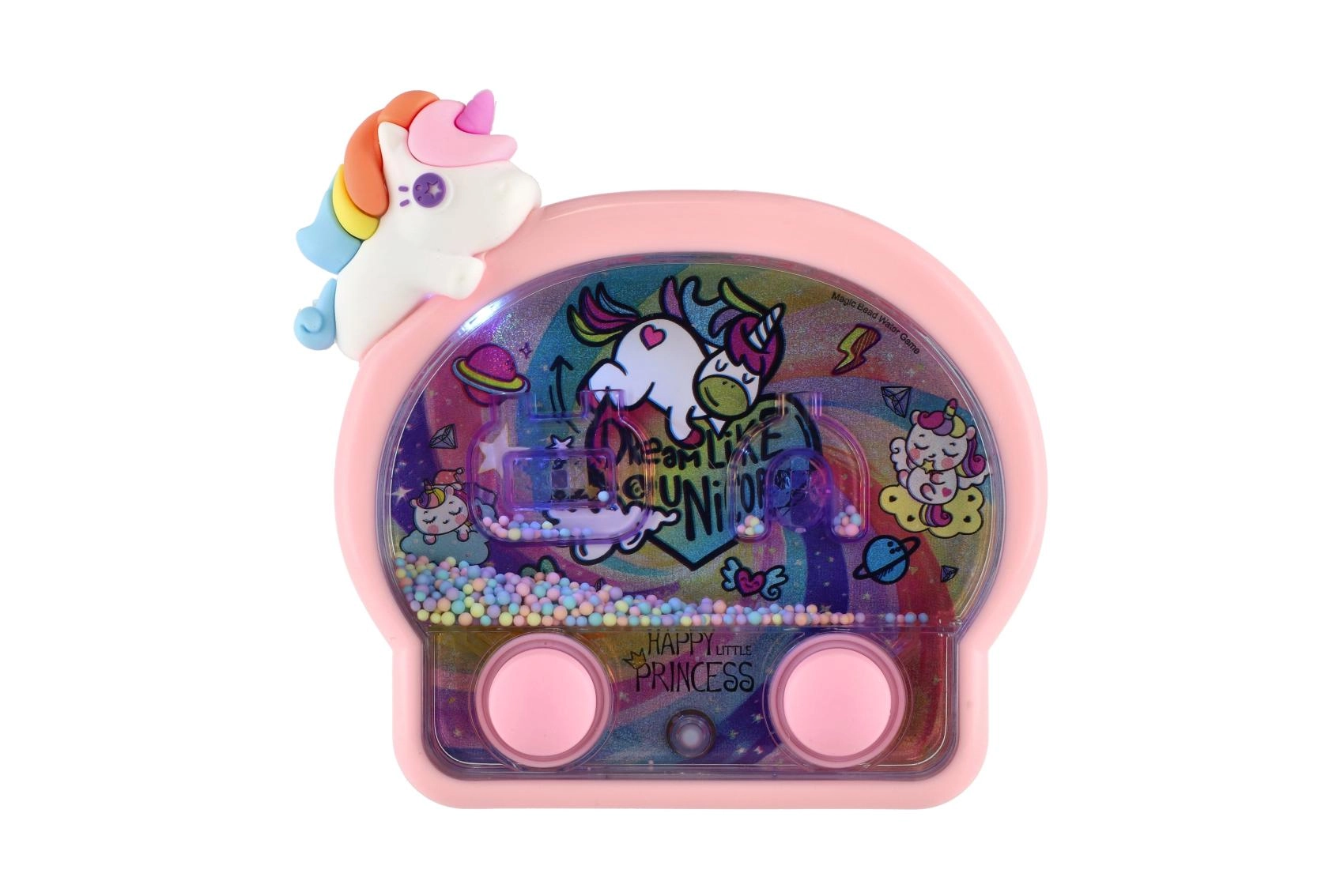 Táto roztomilá vodná krúžková hra v jednorožcom dizajne je ideálny spoločník na cesty aj do detskej izby. Jednoduché ovládanie dvoma tlačidlami rozhýbe vodu a pomôže deťom presne mieriť krúžky na terčíky. Neónové svetielka podčiarkujú rozprávkový vzhľad a robia z každej hry malý slávnostný zážitok.