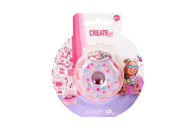 Roztomilý balzam na pery v tvare donutu s praktickým príveskom od CREATE IT! poteší deti aj tínedžerov. Hydratuje a zjemňuje pery, vonia po jahodách a vďaka kompaktnému baleniu sa zmestí do vrecka aj kozmetickej taštičky. Kľúčenka umožní pripevnenie na batoh či kľúče a mať starostlivosť o pery vždy poruke.