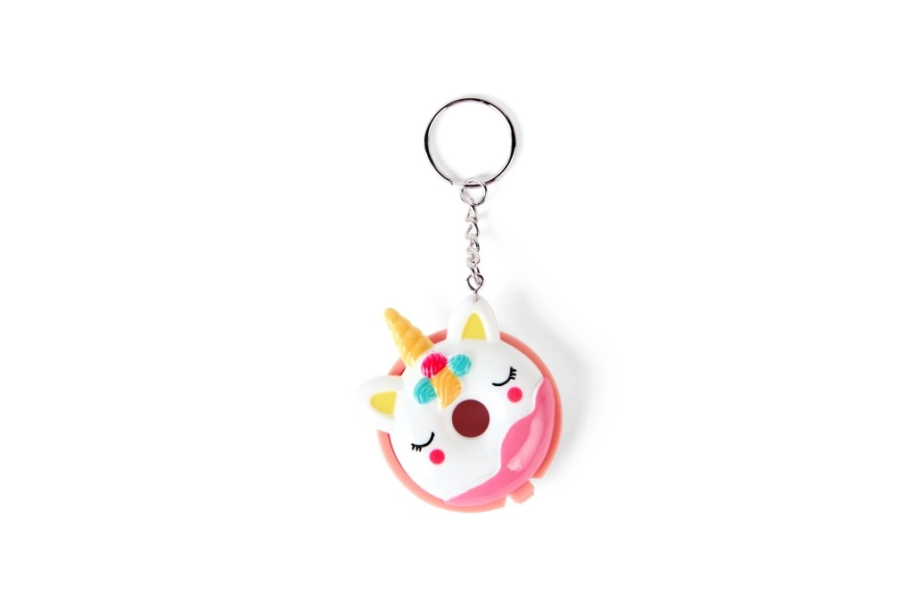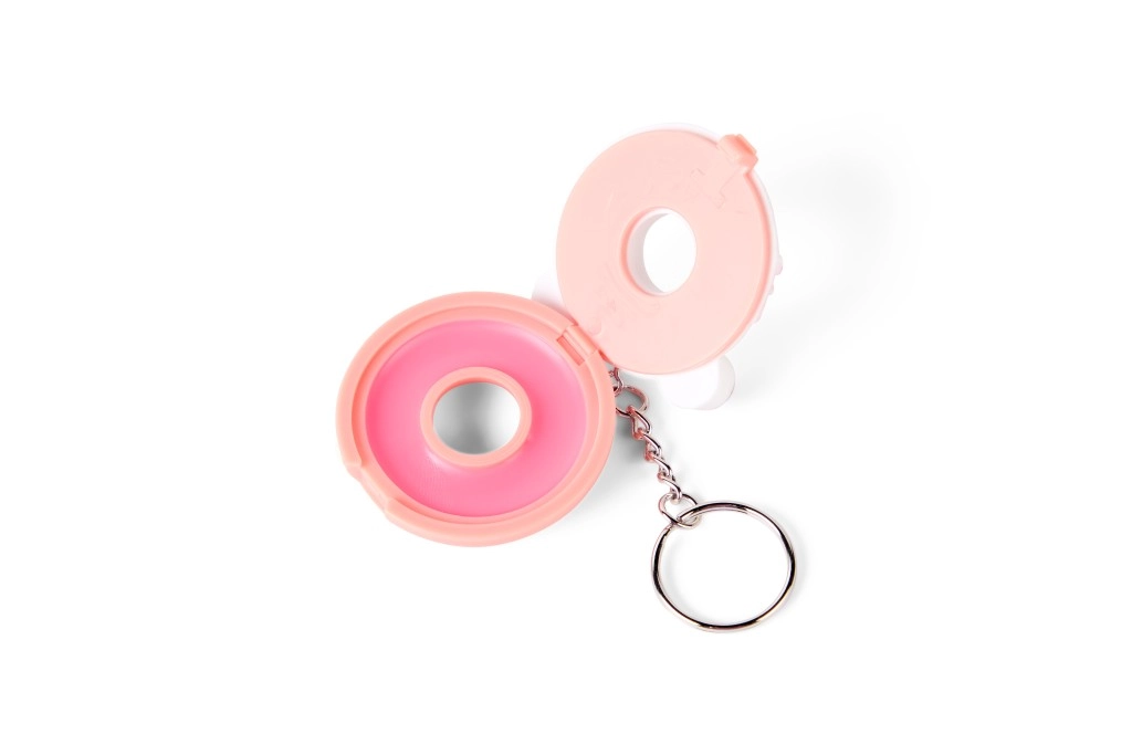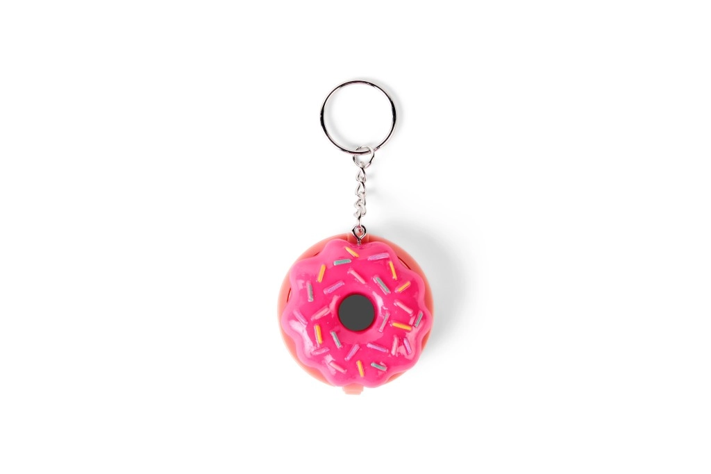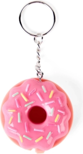 Kompaktné balenie v tvare ružového donutu s farebnými „sprinkles“ a kovovou kľúčenkou na jednoduché pripnutie na batoh či kľúče.