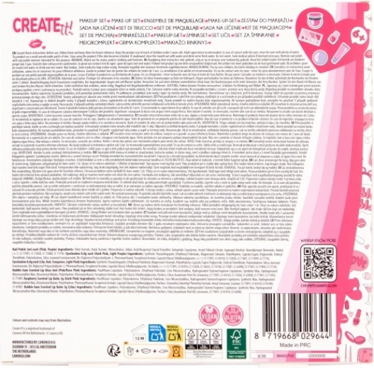 Zábavná detská sada líčenia CREATE IT! v farbách Lila Turquoise poteší malé parádnice od 6 rokov. Obsahuje všetko na kreatívne hrátky: 2 laky na nechty, balzam na pery, rúž, sadu 6 trblietavých očných tieňov, kriedu na vlasy a štetce na jednoduchú aplikáciu.