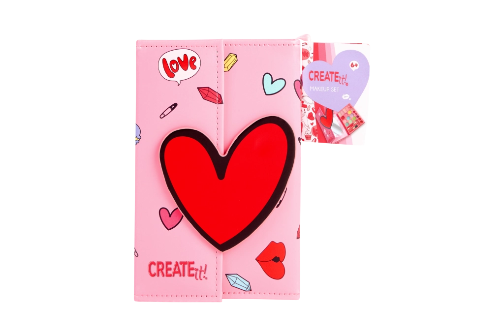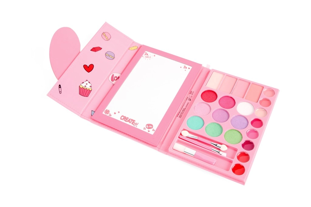 Objavte kreatívny svet líčenia s detskou sadou CREATE IT! vo forme magnetickej knihy. Vďaka šikovnému skladaciemu puzdru so srdiečkom je všetko prehľadne usporiadané, ľahko prenosné a pripravené na okamžité použitie. Farebné paletky a doplnky motivujú k bezpečnému experimentovaniu, rozvíjajú fantáziu a jemnú motoriku.