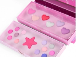 Veselý ružový vzhľad s motívmi srdiečok a hviezdičiek, prehľadné výsuvné či vrstvené priehradky a atraktívna prezentácia obsahu.