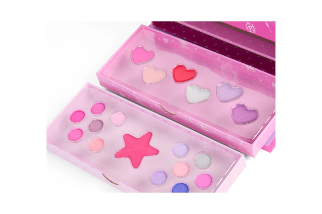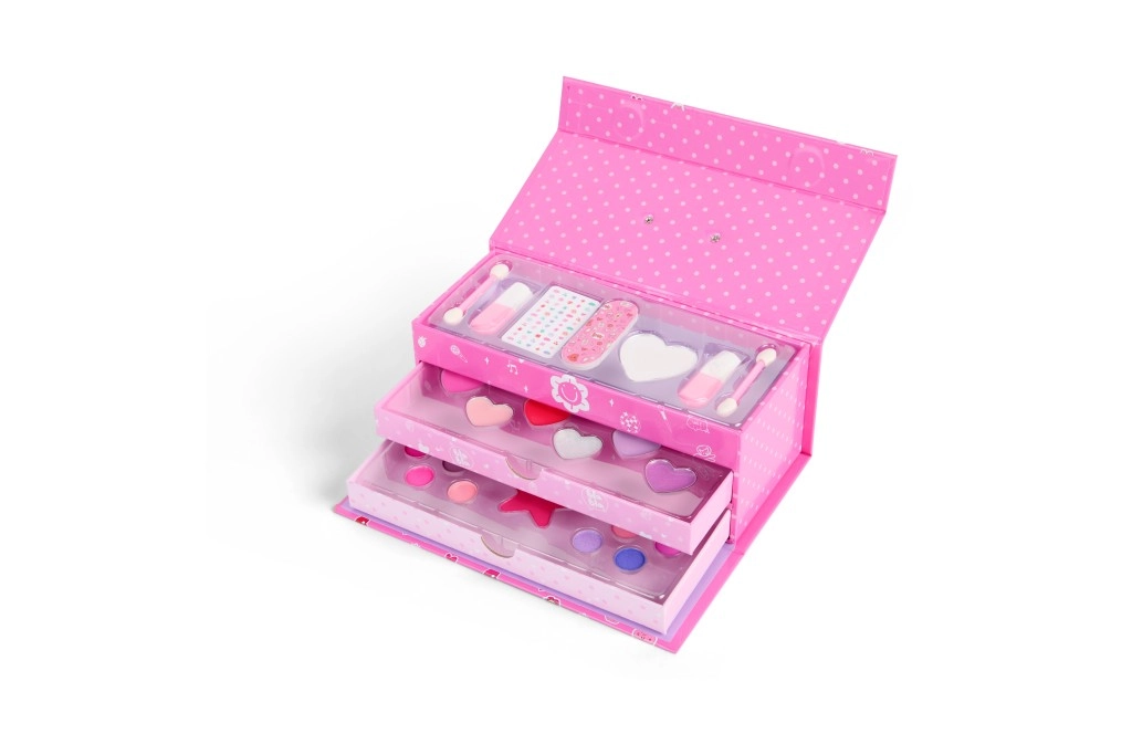 Každé poschodie má svoju rolu: prvé obsahuje laky na nechty, pilník, aplikátory, samolepky a lícenku, druhé ponúka lesky na pery a tretie poschodie je venované farebným očným tieňom a ďalším lícenkám. Skvelá voľba pre začiatočníčky, narodeninové darčeky aj víkendové dobrodružstvá.