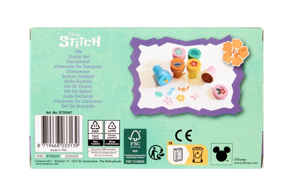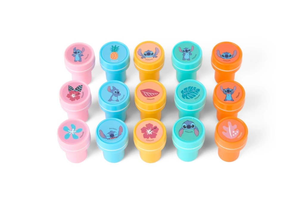 Kreatívna sada pečiatok s motívmi z obľúbeného seriálu STITCH poteší všetkých malých milovníkov tvorenia. V balení nájdete 15 ks pečiatok, farebný vankúšik na odtlačok a doplnky na jednoduché zdobenie obrázkov, blahoželaní aj školských zošitov.