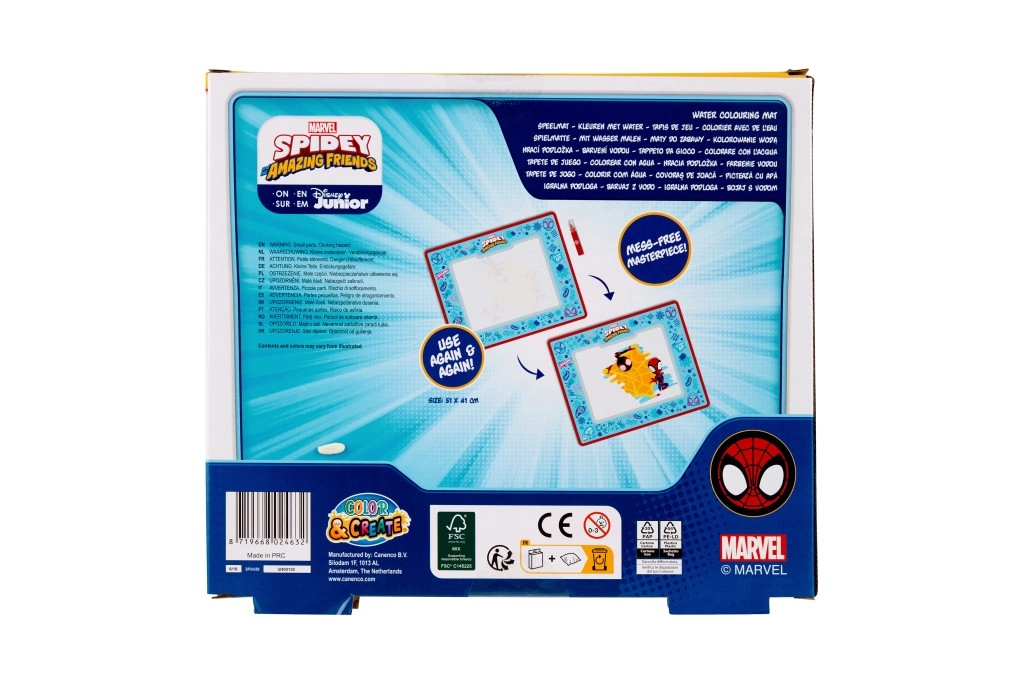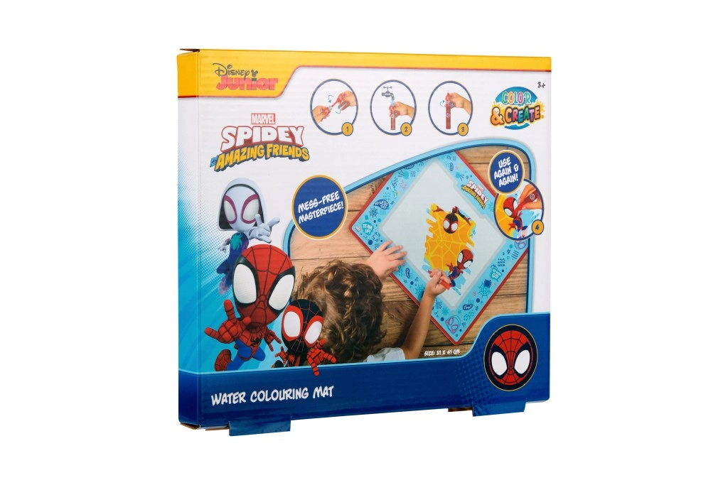 Táto kreatívna podložka s motívom SPIDEY je skvelým spôsobom, ako zaujať deti maľovaním bez farieb a škvŕn. Špeciálne vodné pero zanecháva na podložke farebné stopy, ktoré po zaschnutí zmiznú, takže zábava môže pokračovať stále dookola.
