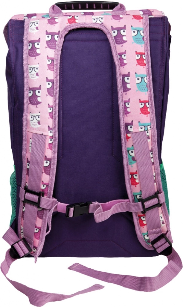 Tento fialový školský batoh s roztomilým motívom sovičiek je ideálny pre školákov aj predškolákov. Vďaka chytrému členeniu vrátane polstrovaného vrecka na notebook alebo tablet udrží všetky školské potreby bezpečne a prehľadne. Odolné materiály, pevné madlo a hliníkové pracky zabezpečujú dlhú životnosť a jednoduché každodenné používanie.