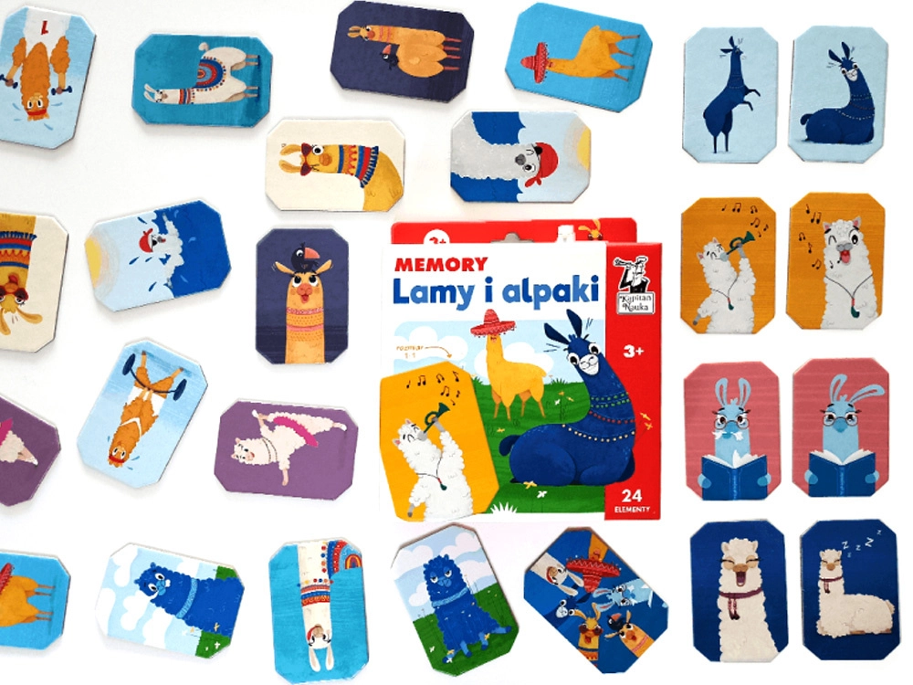 Objavte jednoduchú a chytľavú hru, ktorá spája tréning pamäti s atraktívnymi obrázkami roztomilých zvieratiek. Deti si pri hľadaní rovnakých dvojíc precvičujú vizuálne vnímanie, sústredenie aj trpezlivosť. Ilustrácie lám a alpák v rôznych roliach (baletka, muzikant, pirát a i.) dodávajú hre šmrnc a podporujú fantáziu.