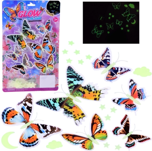 Motýle s výraznými vzormi a ľahkým 3D efektom oživia steny aj nábytok. Cez deň dekorujú, v noci doplnia magickú scenériu.
