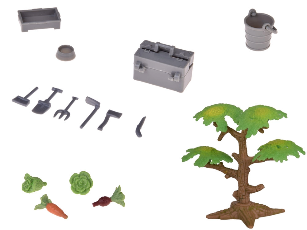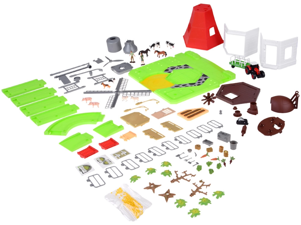 Súčasťou balenia je traktor s prívesom, figúrky hospodára a hospodárky a bohatá sada zvierat zo statku (kone, kravy, prasatá, ovce, psy). Nechýba náradie, vedierko, debničky, krmivo a ďalšie doplnky pre realistické scenky. Diely sú farebné, modulárne a ľahko sa skladajú, takže podporujú kreativitu, predstavivosť aj organizáciu priestoru.