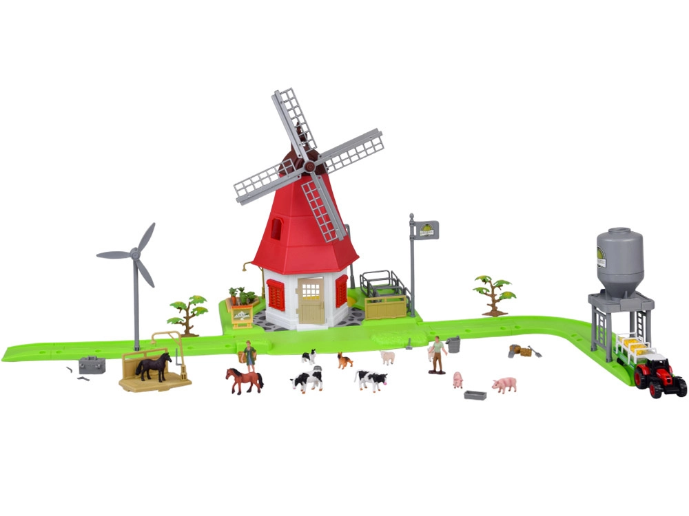 Tento detailne spracovaný set umožní deťom stať sa pravými hospodármi. Dominantou je biely veterný mlyn s dvoma poschodiami a otočnými lopatkami. Otváracie dvere, červené okenice a otvorená zadná stena uľahčujú prístup do interiéru. Okolie dopĺňa záhradka, ohrady pre zvieratá, silo, dopravné značenie aj dekoratívne stromy.