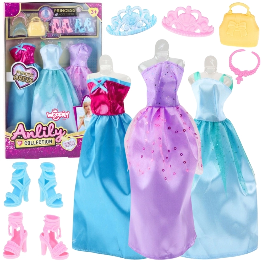 Štýlový komplet pre bábiky od značky WOOPIE poteší všetky malé milovníčky módy. Obsahuje šaty rôznych strihov a farieb, topánky, kabelku, korunky a náhrdelník, vďaka ktorým deti vytvárajú originálne outfity pre bábiky vysoké cca 29–30 cm. Bezpečné a odolné materiály, jednoduché obliekanie a množstvo kreatívnej zábavy robia zo sady skvelý darček pre deti od 3 rokov.