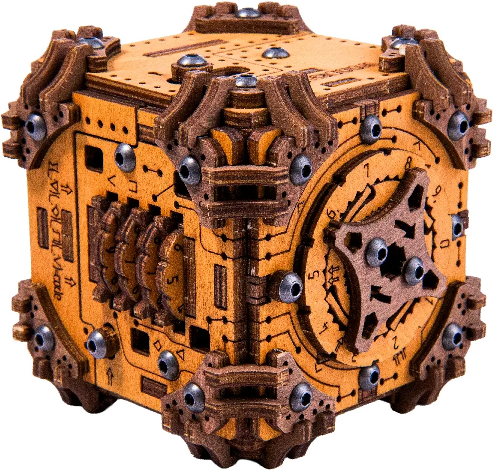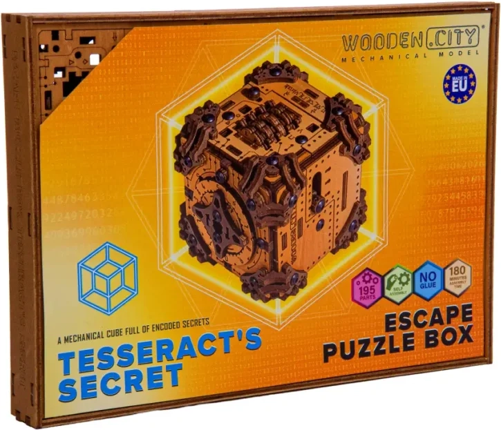 Objavte čaro mechanických hlavolamov s drevenou únikovou kockou Tesserakt od WOODEN CITY. Tento precízne vyrezávaný 3D model z brezovej preglejky skrýva tajnú komoru, ktorú otvoríte len pomocou logického uvažovania a správnych krokov. Užite si skladanie bez lepidla, funkčné mechanizmy, prepracované detaily a skvelý darček pre milovníkov hlavolamov a dizajnu.