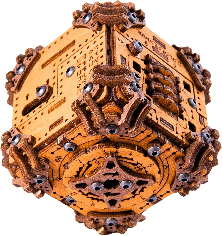 Drevené 3D puzzle Tesserakt je estetická aj logická výzva v jednom. Zostavte mechanickú kocku zo 195 presne rezaných dielikov a vydajte sa na cestu objavovania jej tajných mechanizmov. Žiadna sila – iba jemnosť a premyslené kroky vás dovedú k otvoreniu skrytej schránky.