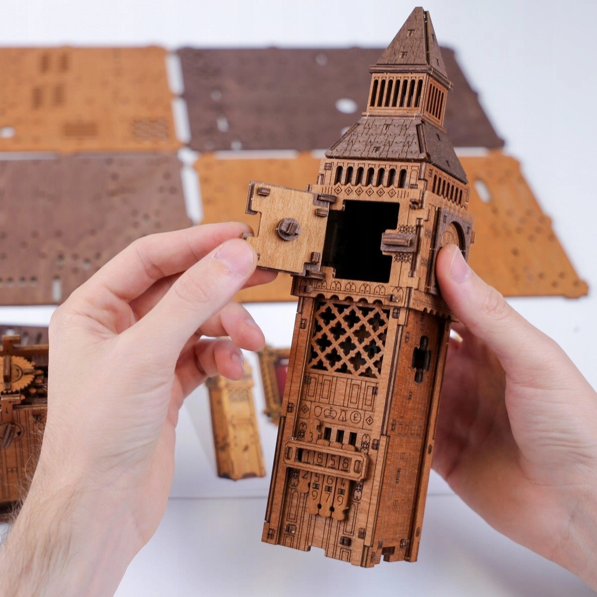 Zapojte logiku, jemnosť a trpezlivosť – sila tu nie je potrebná. Každý dielik presne zapadá a odhaľuje skryté riešenia mechanického puzzle. Model v sebe spája čaro londýnskej veže s hodinami s výnimočným únikovým mechanizmom pre jedinečný zážitok zo skladania aj objavovania.