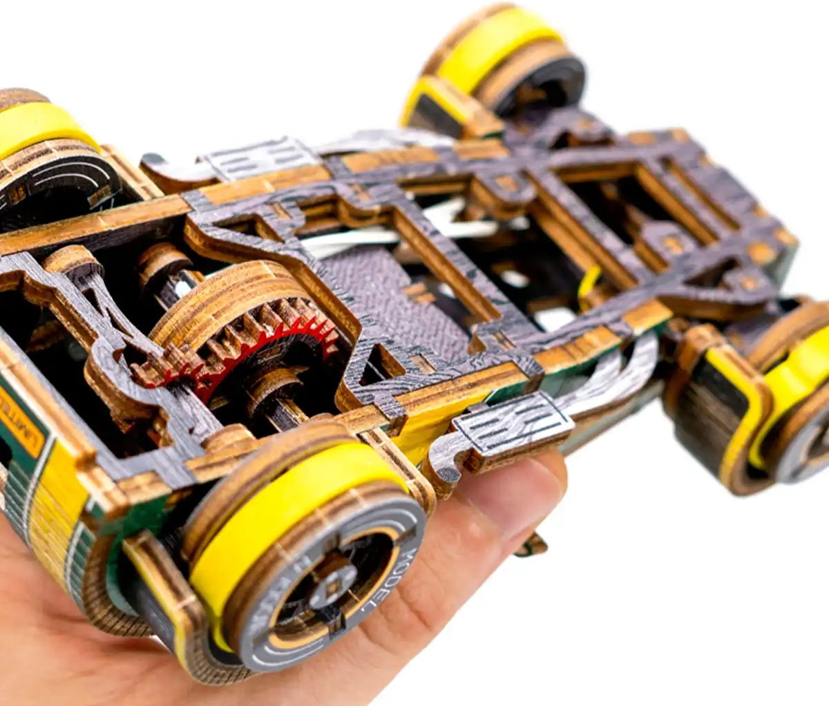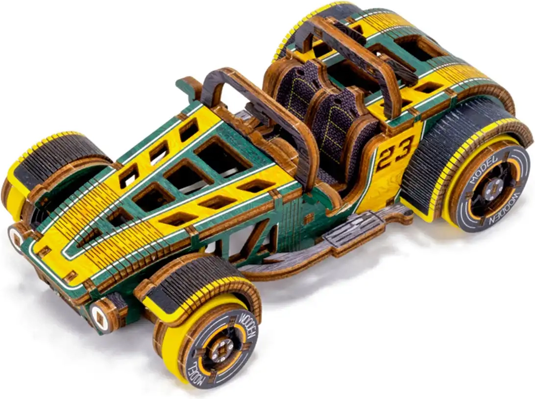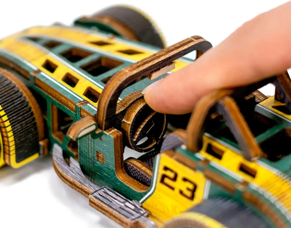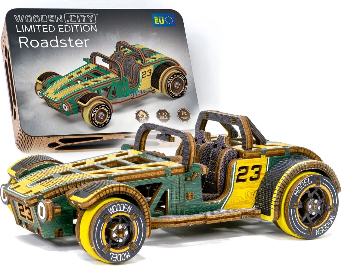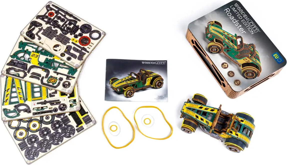 Drevené 3D puzzle Roadster – limitovaná edícia prináša zábavu zo stavby aj radosť z hotového mechanického modelu. Vďaka presne laserom vyrezaným dielom z ekologickej brezovej preglejky zostavíte bez lepidla prepracované auto s realistickými detailmi a plynulým chodom.