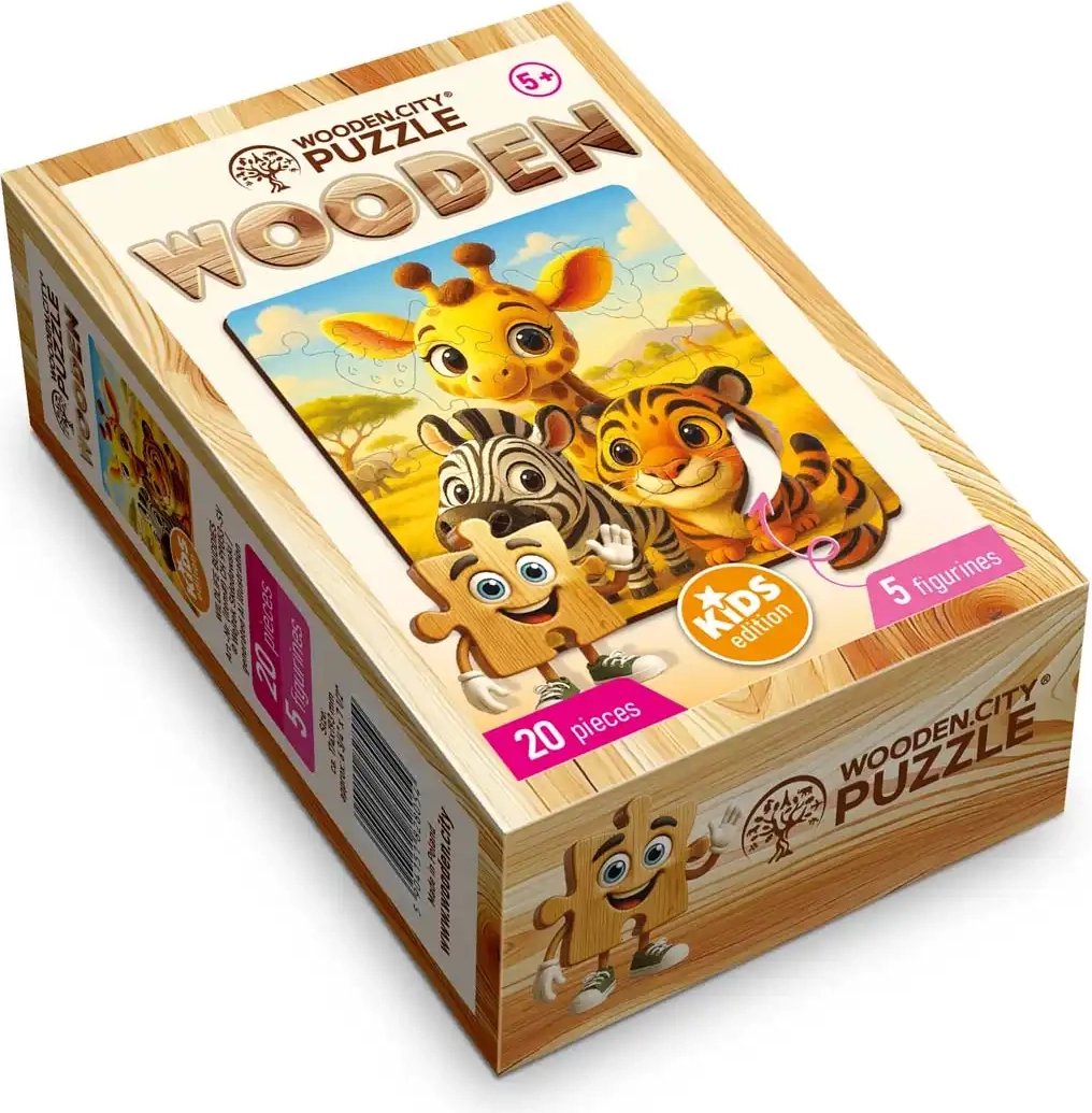 Drevené puzzle Priatelia od WOODEN CITY prináša deťom radosť zo skladania a rozvoja jemnej motoriky. Každý dielik je vyrobený s mimoriadnou presnosťou a starostlivosťou pre dokonale lícujúci obraz. Laserové spracovanie zaisťuje čisté a hladké hrany, takže sú dieliky príjemné na dotyk a bezpečné pre malé ruky.