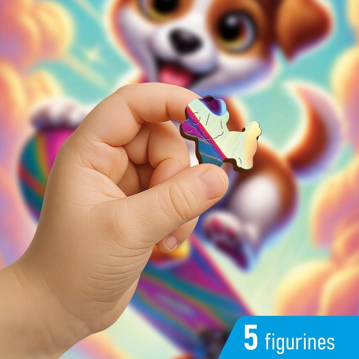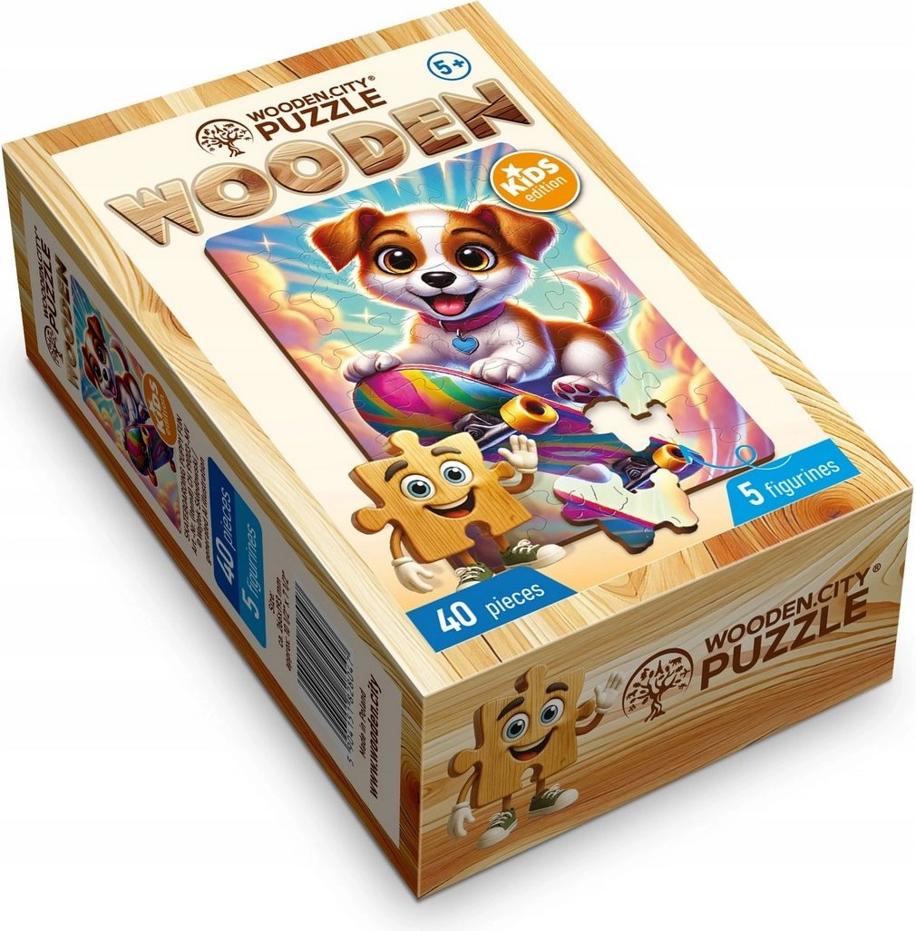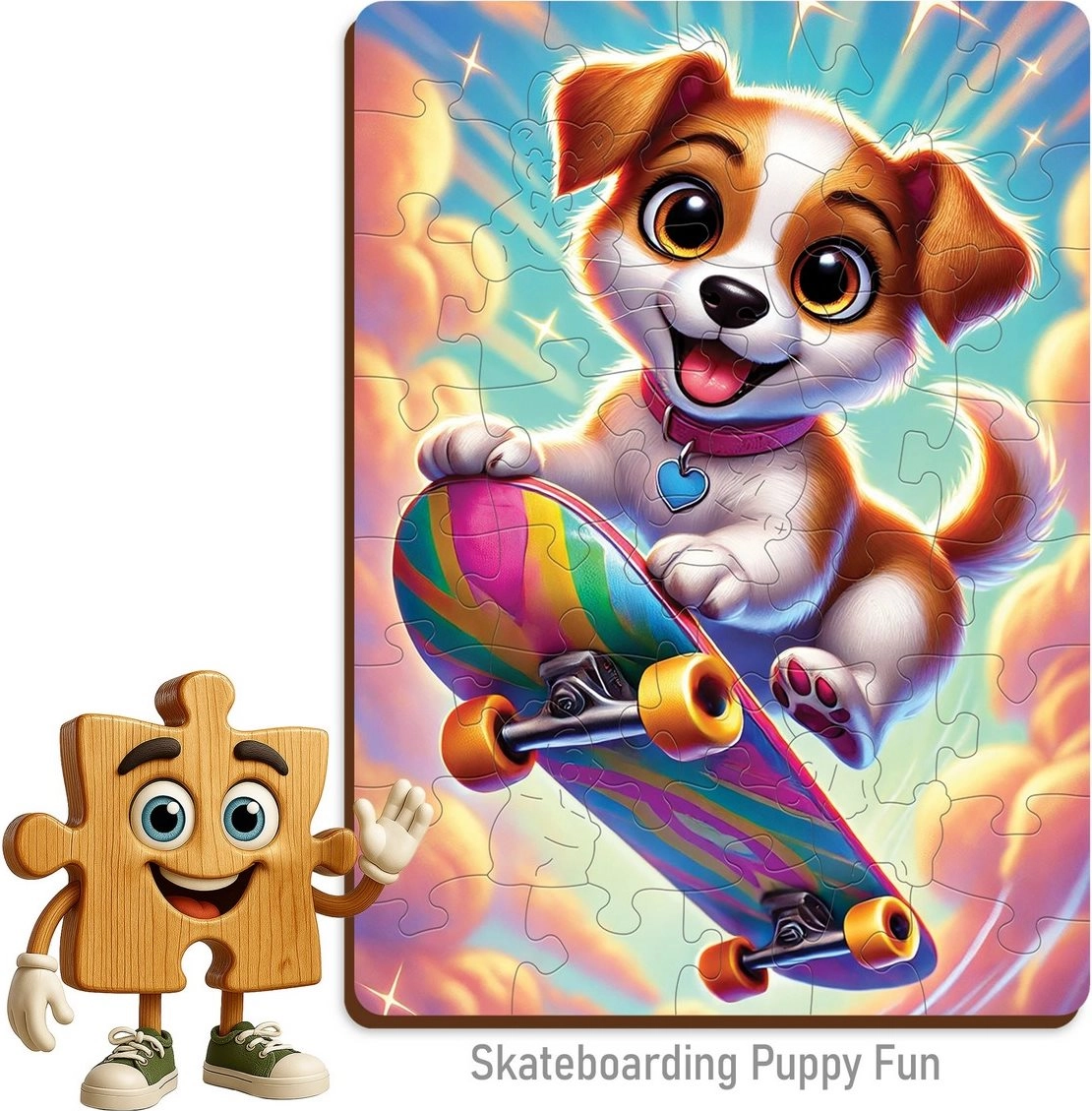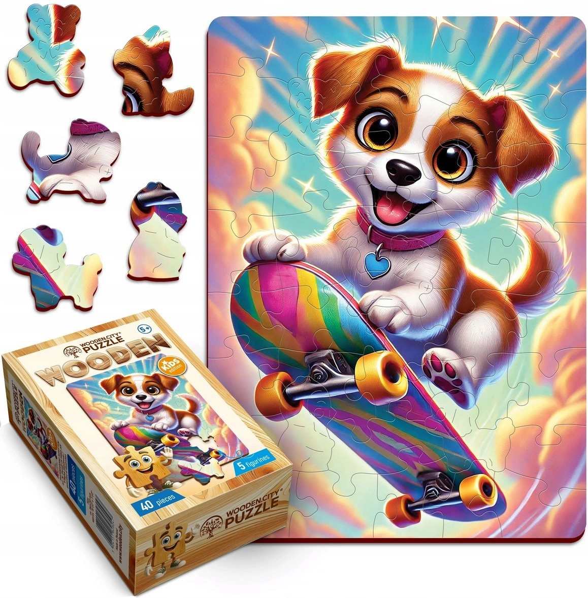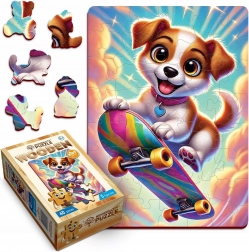 Drevené puzzle s motívom psíka na skateboarde je skvelou voľbou pre deti, ktoré milujú kreatívne hry. Kvalitný materiál a precízne prevedenie zabezpečujú príjemné skladanie aj dlhú životnosť. Súčasťou balenia je aj samostatná predloha, ktorá deťom uľahčí začiatky.