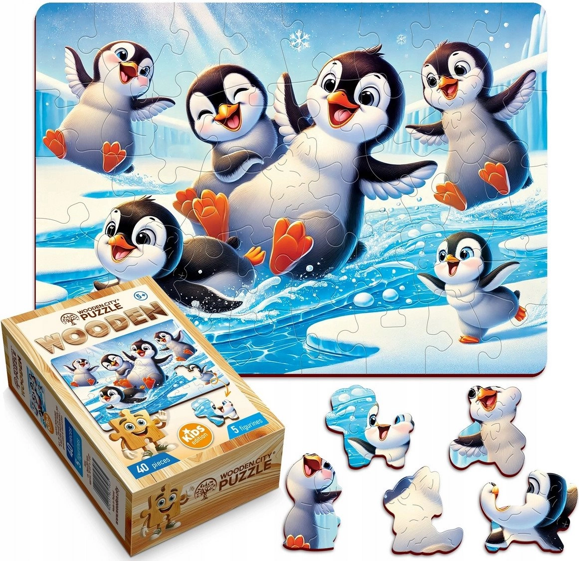 Drevené puzzle Veselí tučniaci od WOODEN CITY je skvelou voľbou pre deti aj rodičov, ktorí hľadajú kvalitnú, odolnú a zábavnú hračku. Vďaka starostlivému spracovaniu a kúzelnému motívu si deti skladanie zamilujú a zároveň si precvičia jemnú motoriku a logické myslenie.