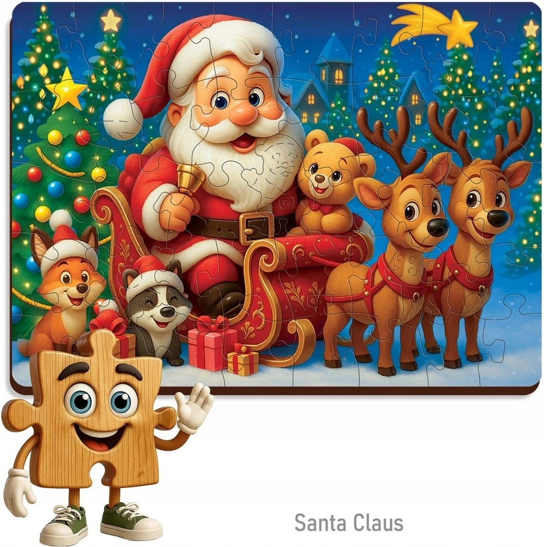 Doprajte deťom radosť z kreatívneho hrania s dreveným puzzle so SANTOM CLAUSOM. Kvalitný materiál a precízne spracovanie zaisťujú bezpečnosť aj dlhú životnosť. Puzzle je ideálne na spoločné rodinné chvíle a rozvoj zručností.