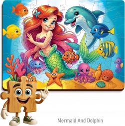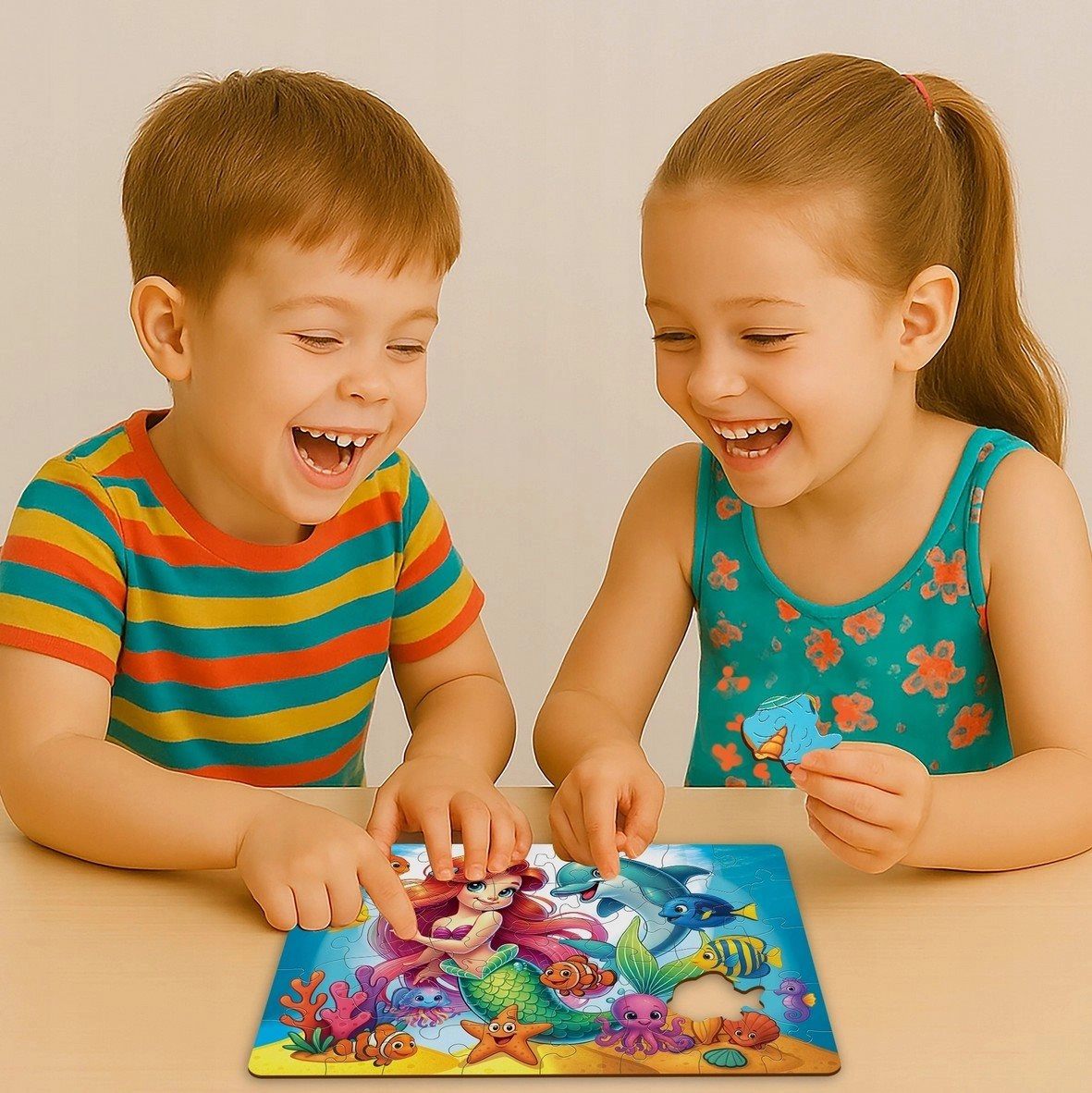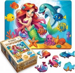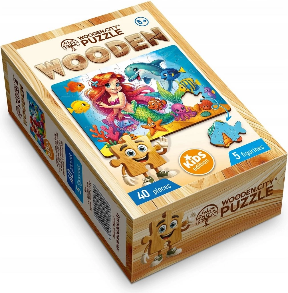 Drevené puzzle WOODEN CITY s motívom morskej víly a delfína prináša deťom krásny vizuálny zážitok aj radosť z dokončeného obrazu. Vďaka kvalitnému spracovaniu sa dieliky príjemne skladajú a skvele do seba zapadajú. Zložený obrázok má rozmery približne 26,6 × 19,3 cm, ideálne na opakované skladanie aj vystavenie.