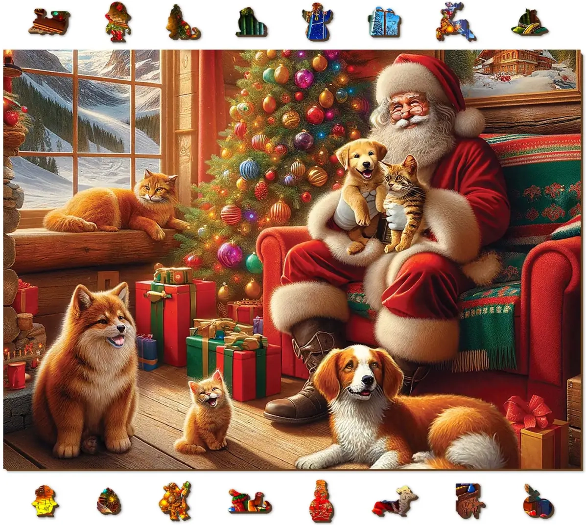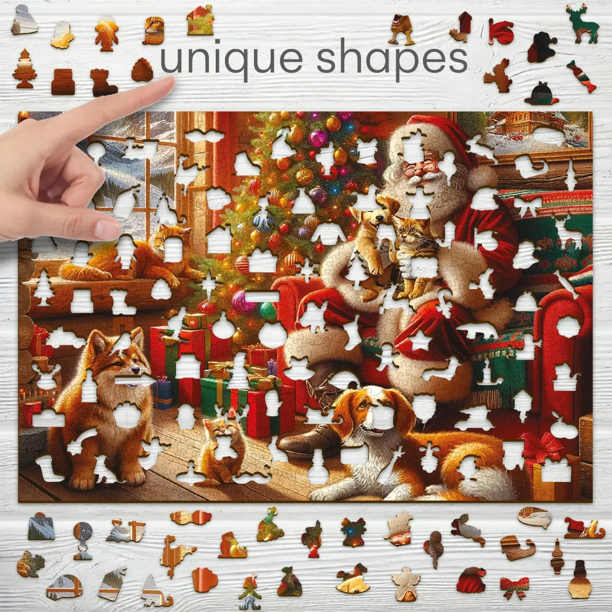 Drevené puzzle Wooden City Santa a priatelia prináša sviatočnú atmosféru priamo k vám domov. Precízne laserové spracovanie zabezpečuje hladké a presné spájanie, zatiaľ čo špeciálne dieliky v tvare tematických motívov potešia každého milovníka skladačiek. V balení nájdete aj samostatnú predlohu pre pohodlnejšie skladanie.