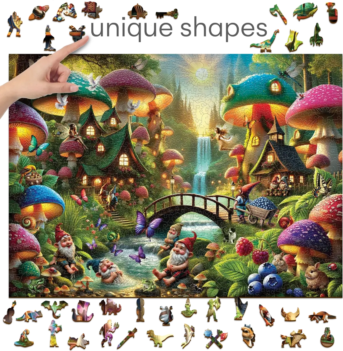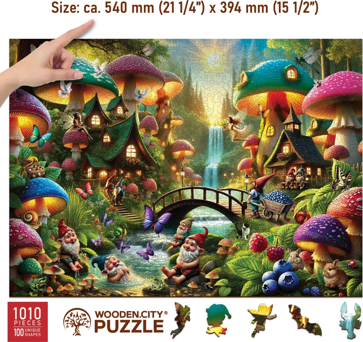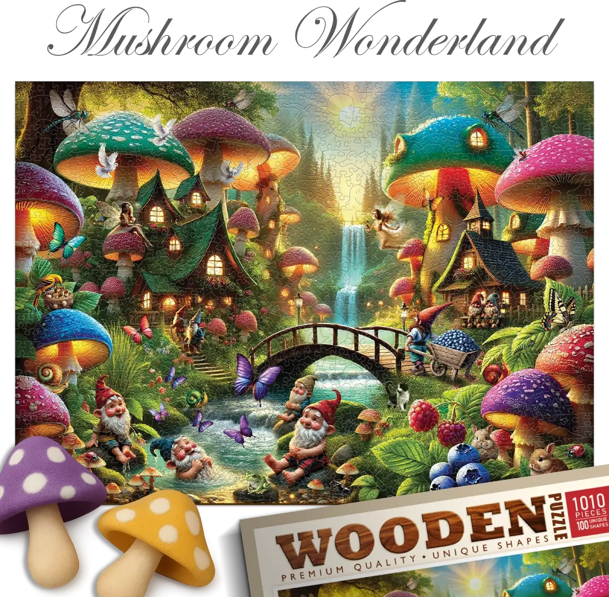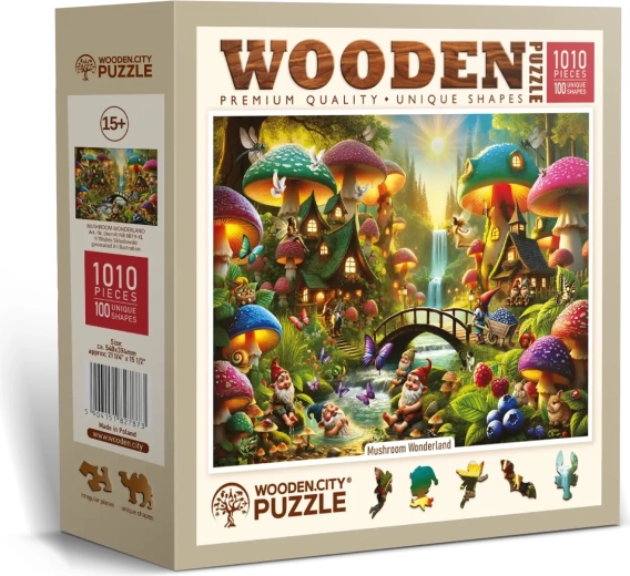 Toto prémiové drevené puzzle značky WOODEN CITY poteší milovníkov skladačiek aj dizajnu. Motív hubového kráľovstva vyniká detailným spracovaním a farebnosťou, ktorá dáva skladaniu šmrnc a zábavu na dlhé hodiny. Vďaka presnému laserovému rezu do seba dieliky perfektne zapadajú a skladanie je plynulé a príjemné.