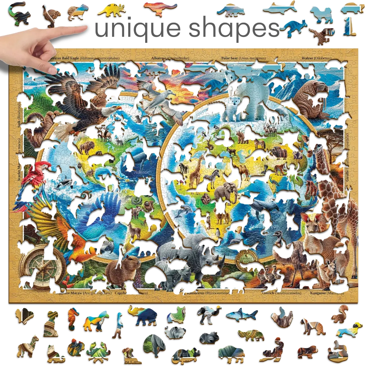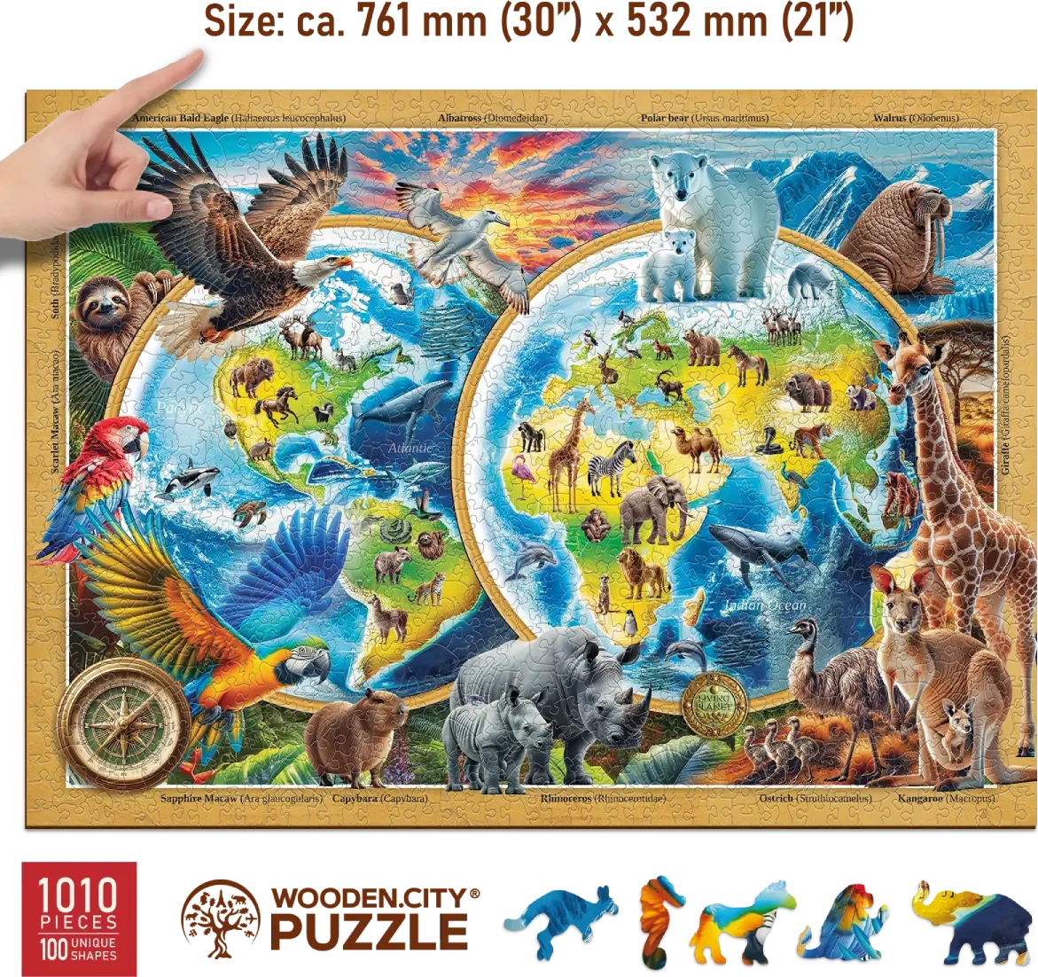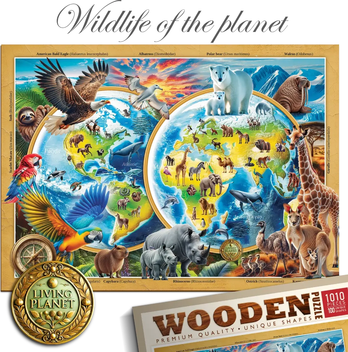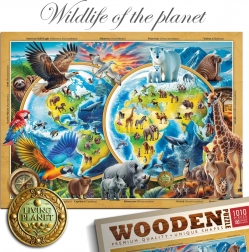 Drevené puzzle WOODEN CITY Planéta divokých zvierat zaujme bohatou grafikou a kvalitným dreveným vyhotovením, ktoré je príjemné na dotyk a odolné. Vďaka precíznemu laserovému rezu sa dieliky dokonale prepájajú a skladanie je plynulé a bez triesok. Súčasťou balenia je aj predloha, ktorá uľahčí orientáciu aj menej skúseným skladateľom.