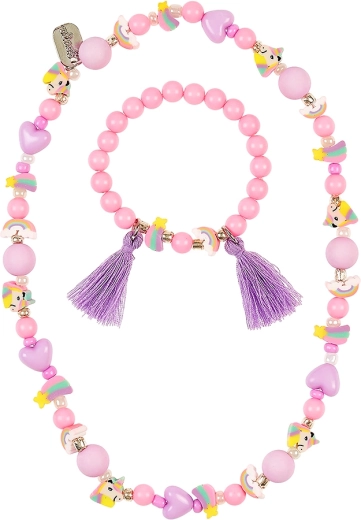 Táto čarovná sada šperkov SOUZA! poteší všetky milovníčky jednorožcov. Korálkový náhrdelník s drobnými príveskami jednorožcov a dúhy dopĺňa pružný náramok v rovnakom štýle. Hladké koráliky a jemné farby zaručia pohodlné nosenie a krásny vzhľad pri každej príležitosti.