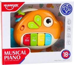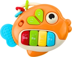 Hudobné pianínko rybička je ideálna prvá hudobná hračka pre batoľatá. Štyri výrazne označené klávesy Do, Re, Mi, Fa po stlačení prehrajú veselé melódie a jednotlivé tóny, čím prirodzene rozvíjajú cit pre rytmus a vnímanie zvuku. Ergonomický tvar rybičky skvele padne do malej rúčky, ľahké telo a hladké, zaoblené hrany zabezpečujú bezpečné a pohodlné používanie.