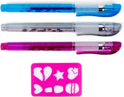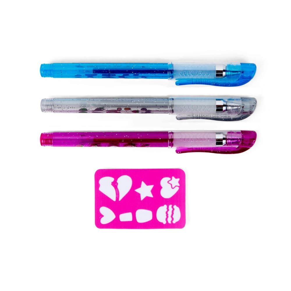 Tri farebné gélové perá s trblietkami dodajú tvojim motívom WOW efekt. Ideálne na kreslenie na pokožku aj jemné linky so šablónou.