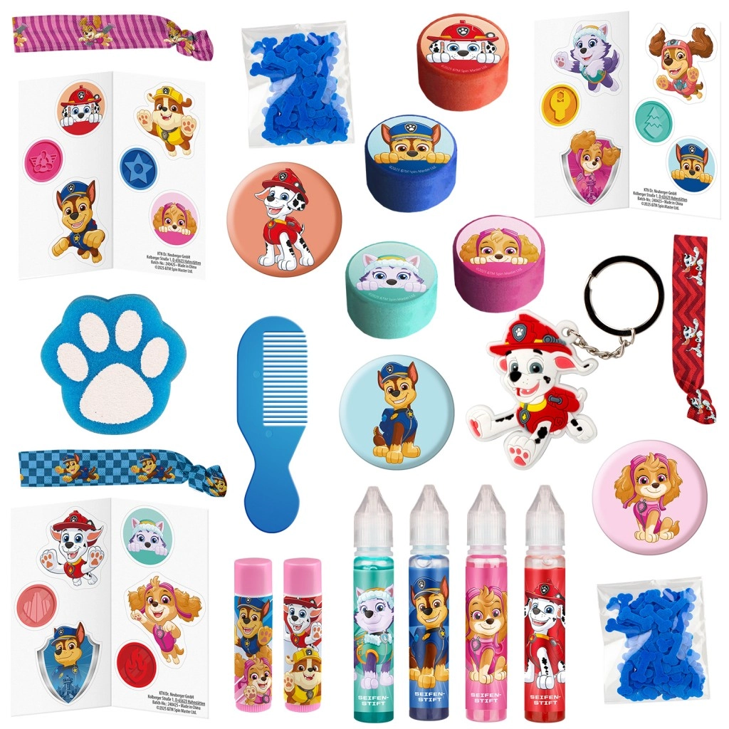 Adventný kalendár PAW PATROL prináša deťom každý deň radosť v podobe praktických aj hravých prekvapení. Vďaka pestrej zmesi kozmetiky a doplnkov bude čakanie na Vianoce plné vôní, bublín a zábavy. Všetko je navrhnuté pre deti a ich obľúbených hrdinov z Tlapkovej patroly.