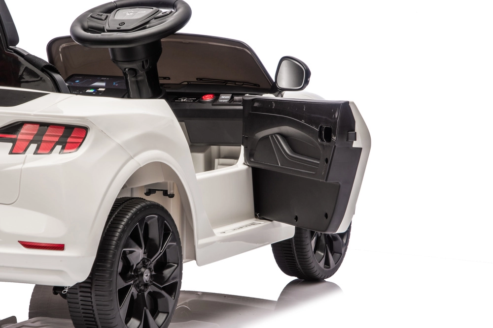 Štýlové detské elektrické autíčko FORD MUSTANG MACH‑E 24V v bielej farbe ponúka realistický vzhľad, pohodlné sedenie a bezpečnú jazdu. Silný 24V pohon, otváracie dvere, LED svetlá a športové kolesá potešia malých vodičov aj rodičov hľadajúcich kvalitnú a zábavnú jazdu.