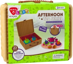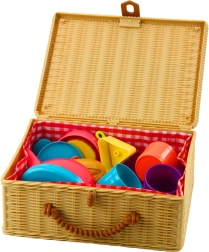 Táto detská čajová sada je ideálna pre malých hostiteľov a hostiteľky, ktorí radi napodobňujú dospelých a vytvárajú vlastné príbehy. Sada obsahuje hrnčeky, tanieriky, kanvičku, hrnček–rendlík a kopu „dobrôt“, ktoré premenia každú izbu na čajový salón alebo piknik v parku. Všetko je vyrobené z ľahkého a odolného plastu so zaoblenými hranami pre bezpečné držanie malými rúčkami.