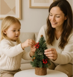 Dodajte interiéru okamžitú sviatočnú atmosféru. Tento malý vianočný stromček s realistickým ihličím, červenými bobuľami a prírodnými šiškami sa skvele hodí na stôl, komodu aj recepciu. Pevná drevená základňa zaisťuje stabilitu, zatiaľ čo kompaktná veľkosť šetrí miesto a zároveň pôsobí efektne.