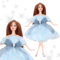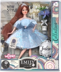 Elegantná bábika Emi v blankytných šatách s jemným tylom a mašľou očarí každé dieťa. Má dlhé hnedé vlasy, štýlovú korunku, pohyblivé končatiny a je vyrobená z bezpečných, odolných materiálov. Skvelý darček od 3 rokov v estetickom balení.