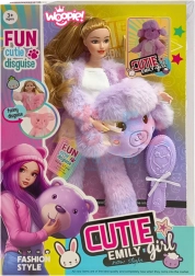 Roztomilá bábika Emi od značky WOOPIE ROYAL si získa srdcia svojim mäkkučkým fialovým kostýmom ovečky, štýlovými doplnkami a pohyblivými končatinami. Ideálna na kreatívnu hru, objímanie a prvý styling – stane sa obľúbenou spoločníčkou každej malej milovníčky módy.
