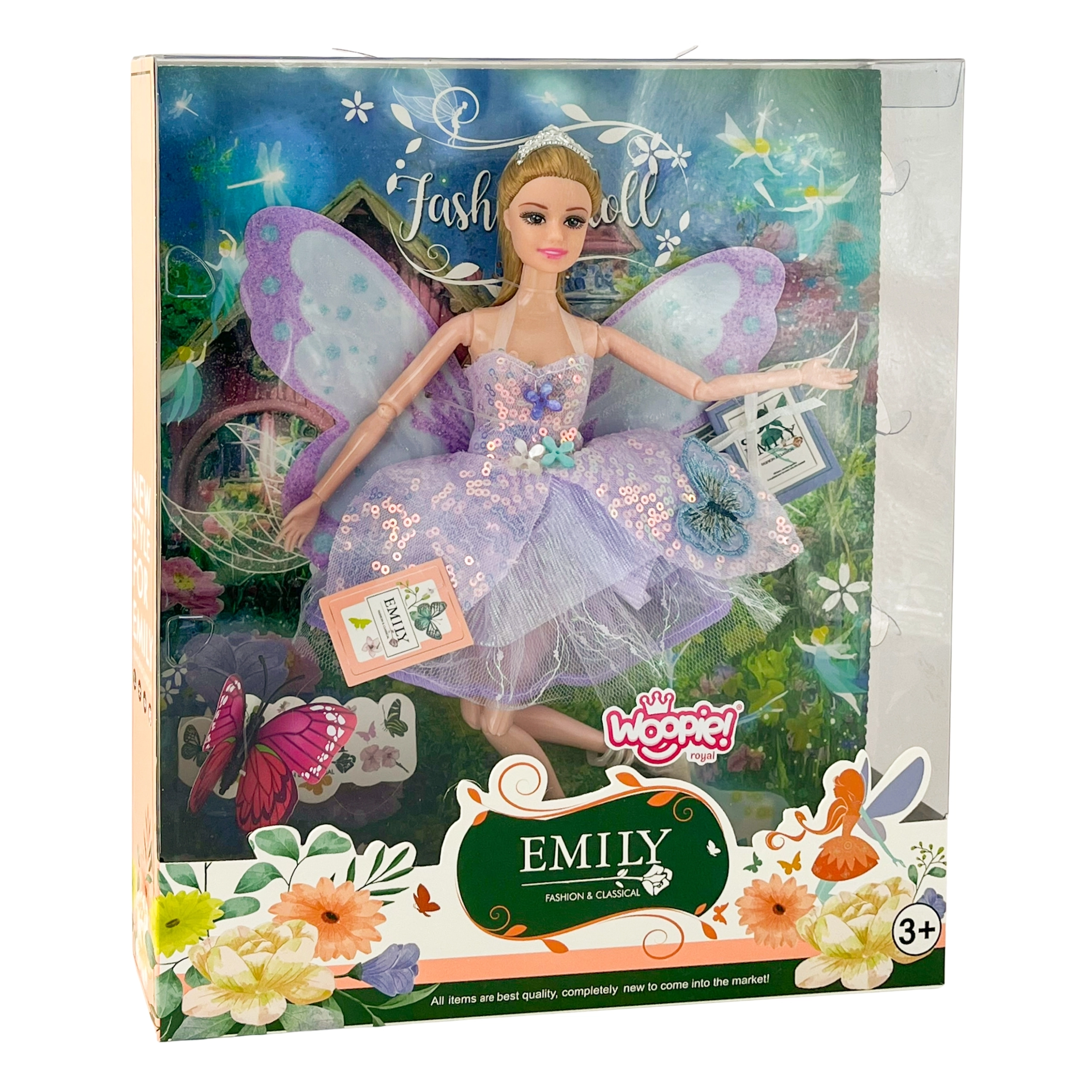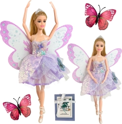 Objavte svet fantázie s bábikou víla Emi, ktorá očarí trblietavými motýlími krídlami, fialovými pastelovými šatami a pohyblivými končatinami. Elegantná korunka, štýlové topánočky a kvalitné spracovanie z bezpečných materiálov premenia každé hranie na čarovný príbeh – skvelý tip na darček.